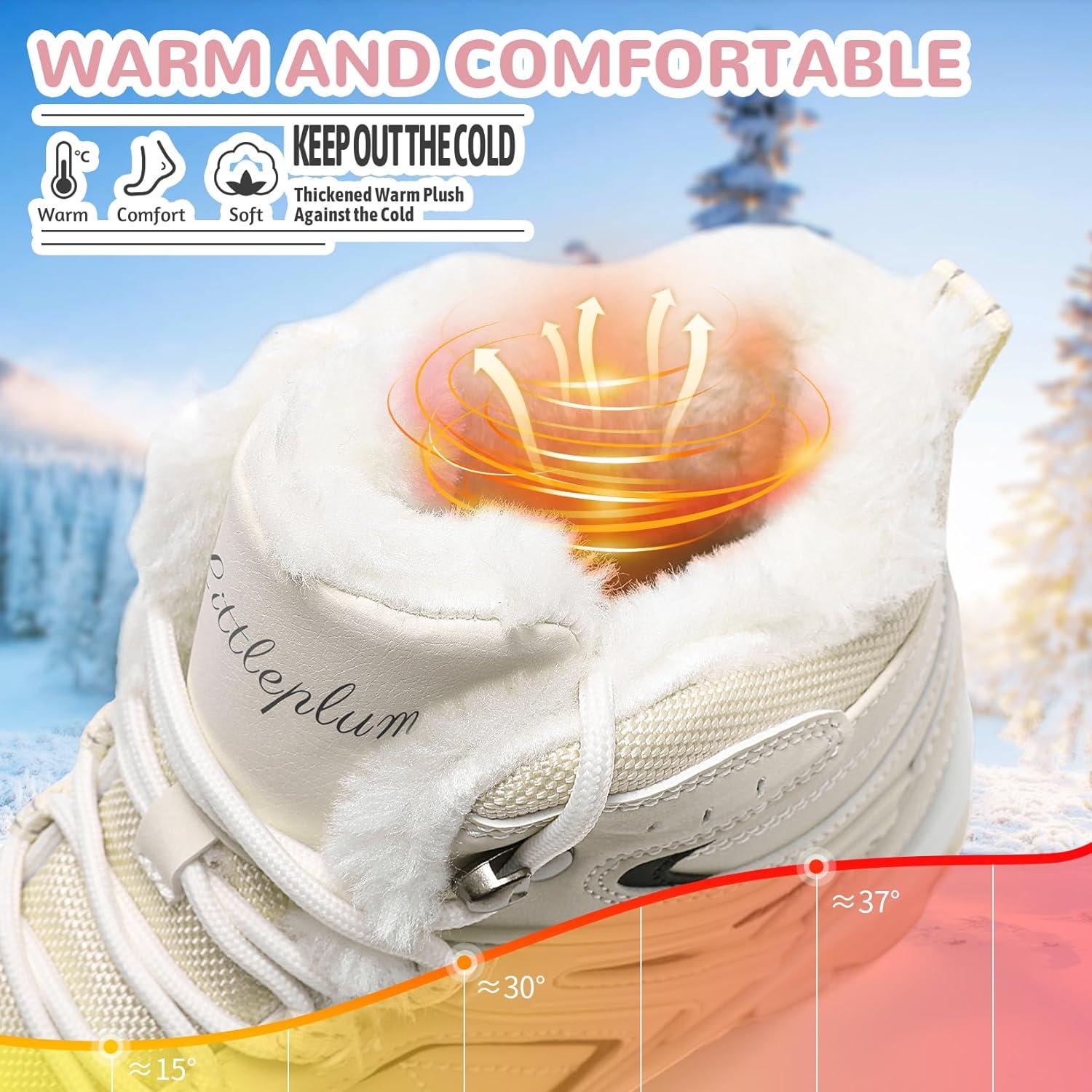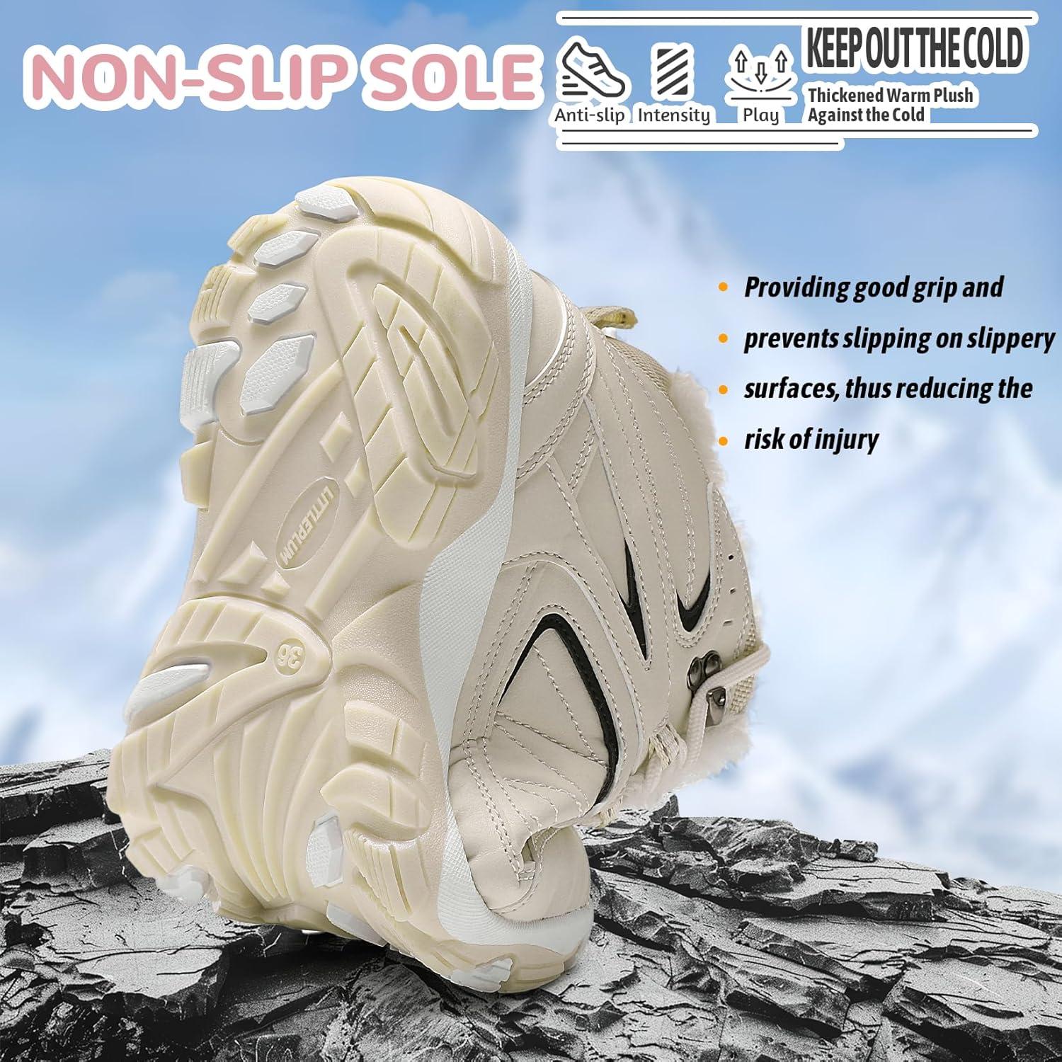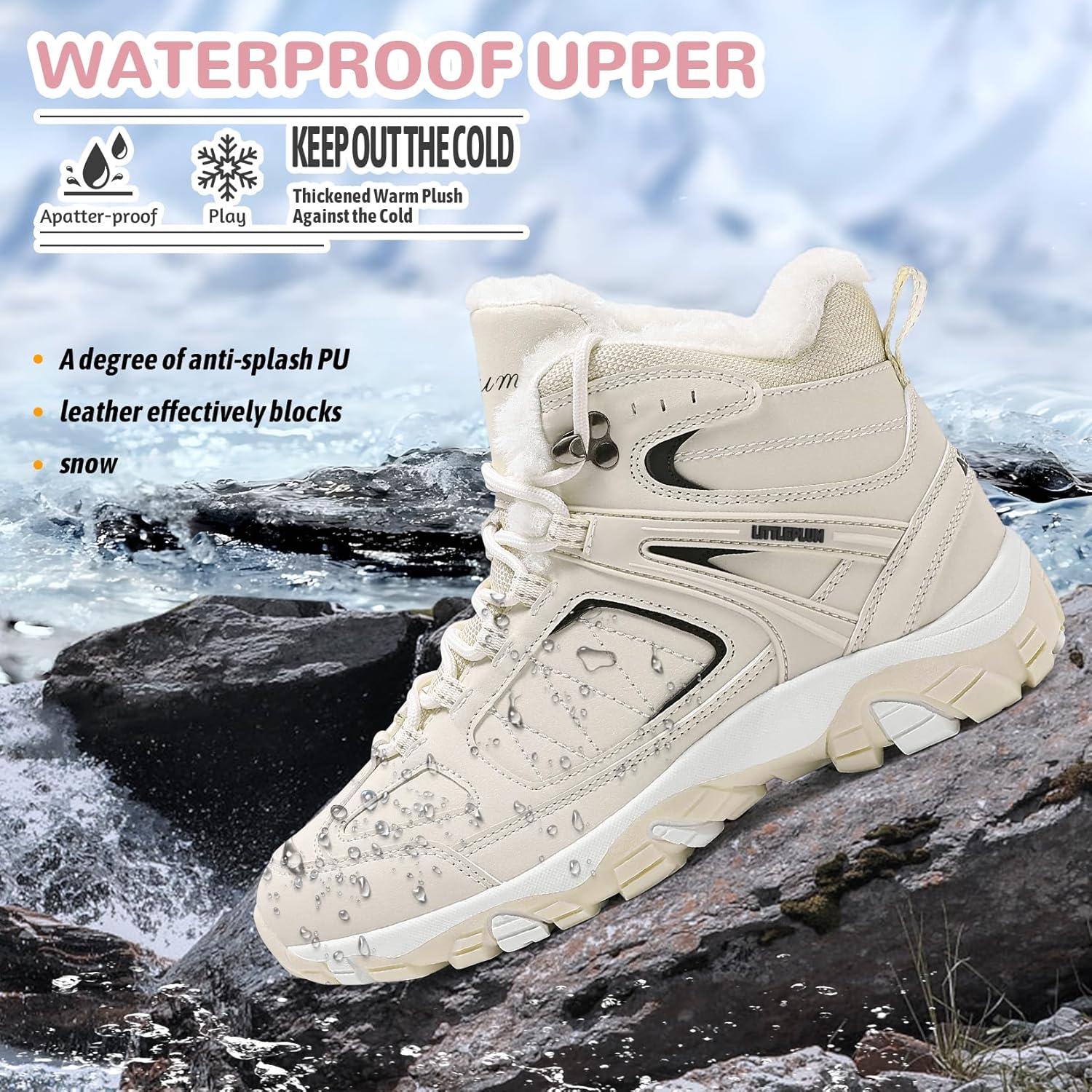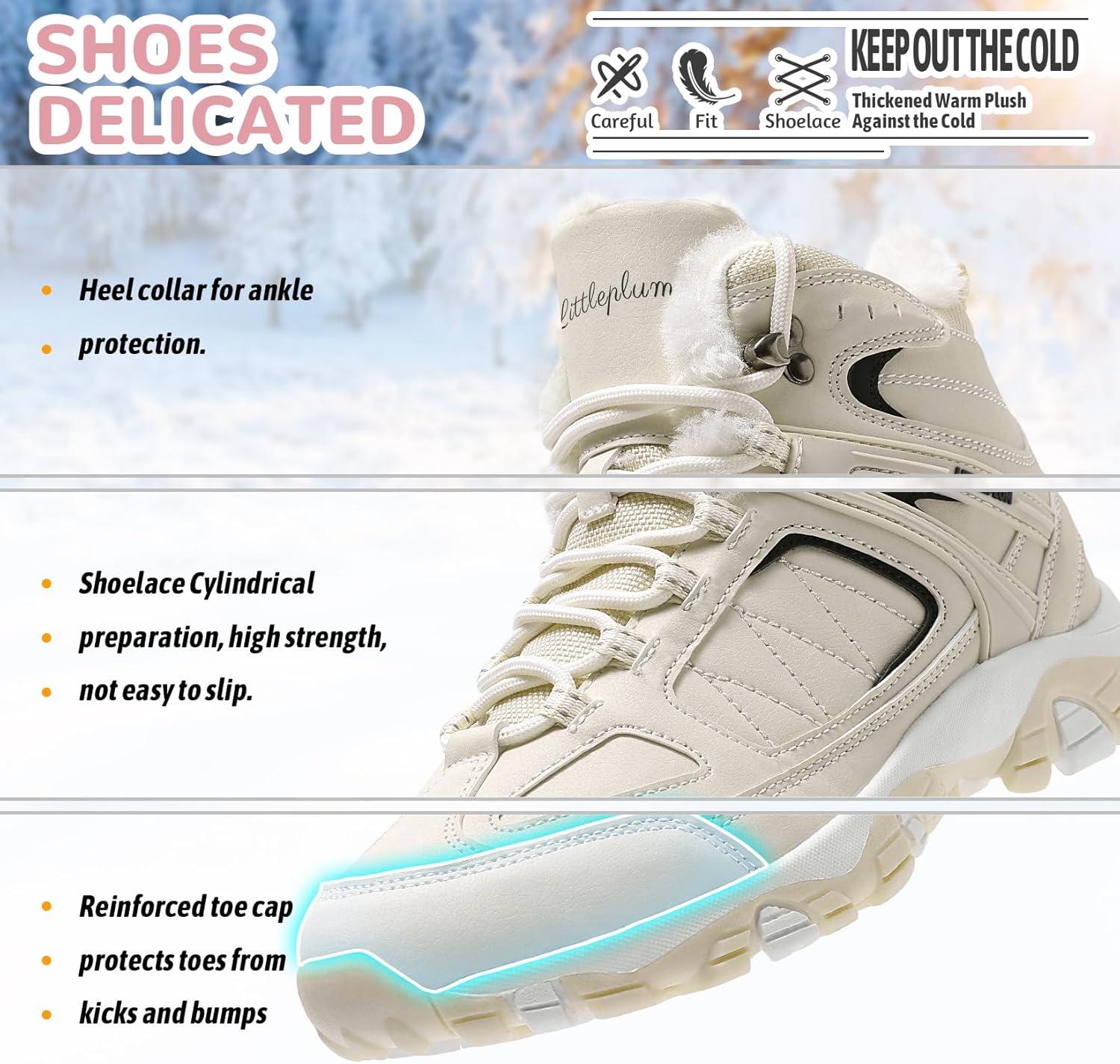Littleplum Snow Boots for Women-Warm Fur Line Anti Slip Womens Winter Boots-Fashion Ankle Booties Sneakers for Outdoor Hiking(Beige)